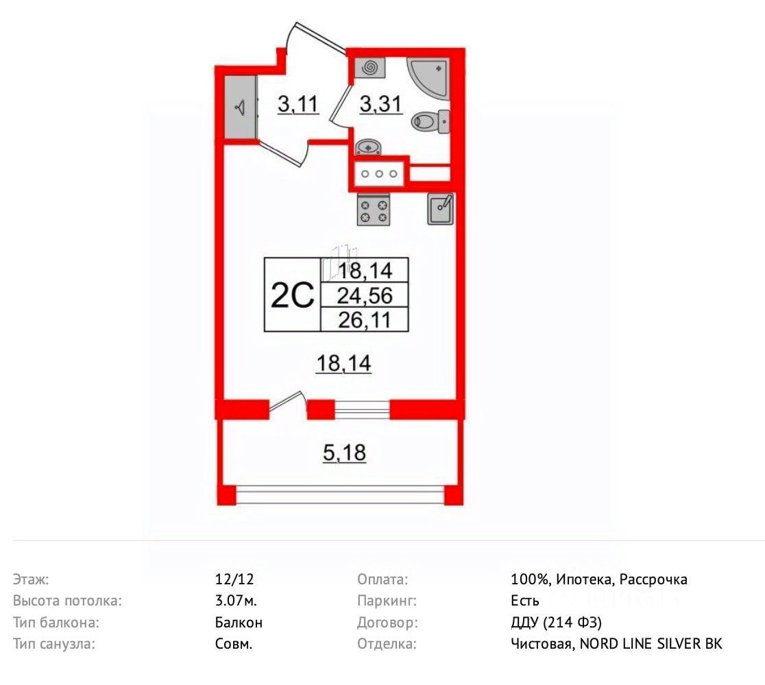 У меня для вас студия-конфета в ЖК "Прайм Приморский"
