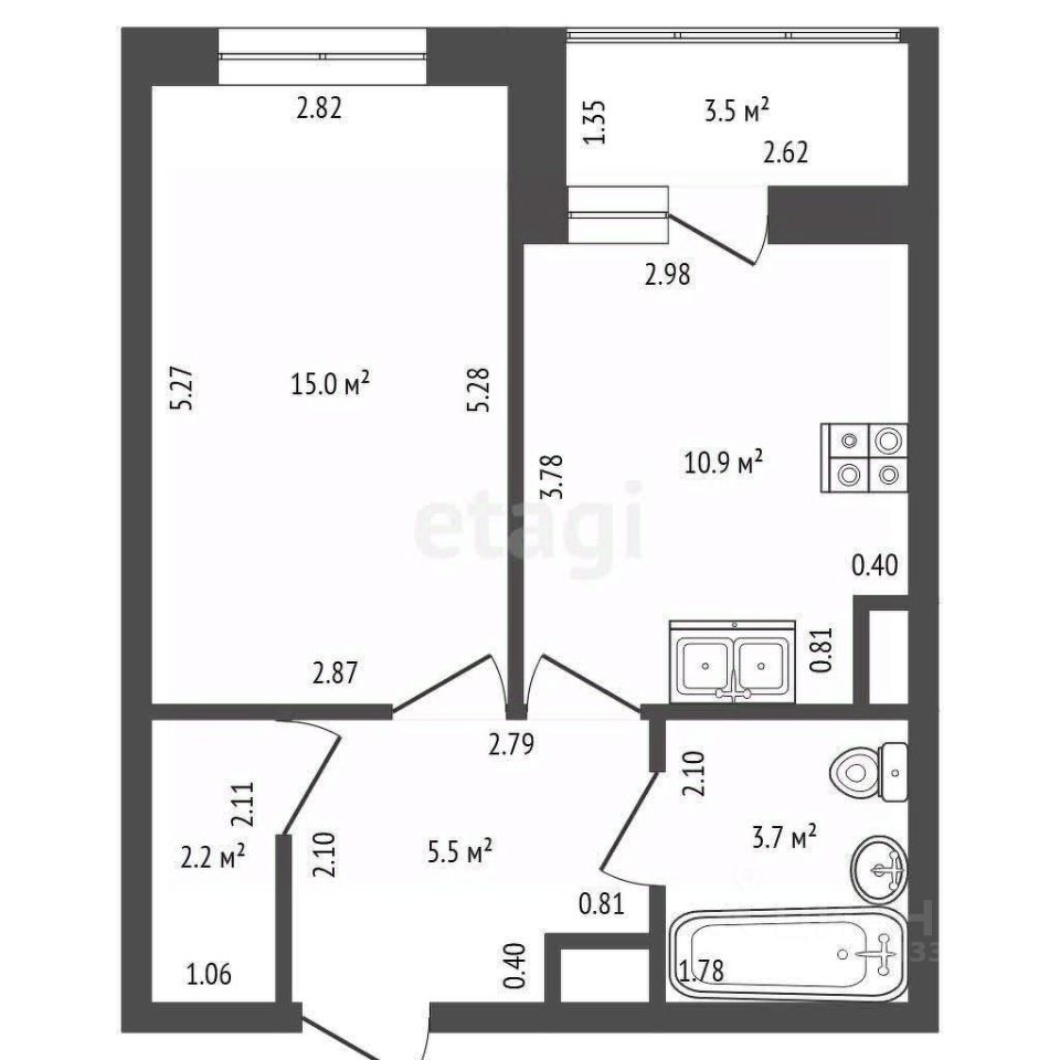 - площадь 37,3 кв.м + пpoстopнaя лоджия 3,5 кв.м;
