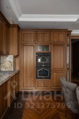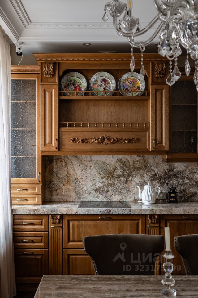 - Натуральный массив дерева в отделке пола (паркет из канадского ореха) и мебели (кухня из массива дуба), дарящий тепло и благородство.