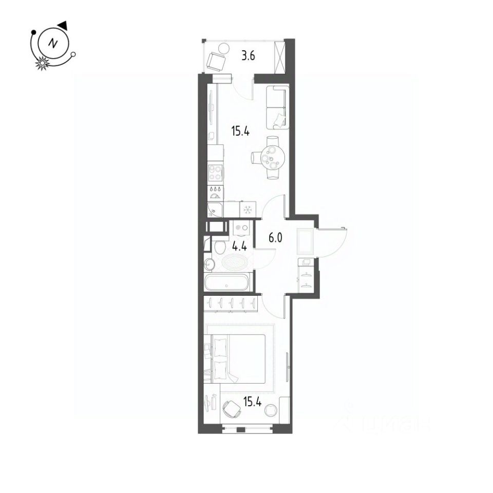 341550 Продается уютная квартира ( 2Е) , где 1 полноценная комната + кухня-гостинная, в современном жилом комплексе ЖК Монография . 43,0 м2