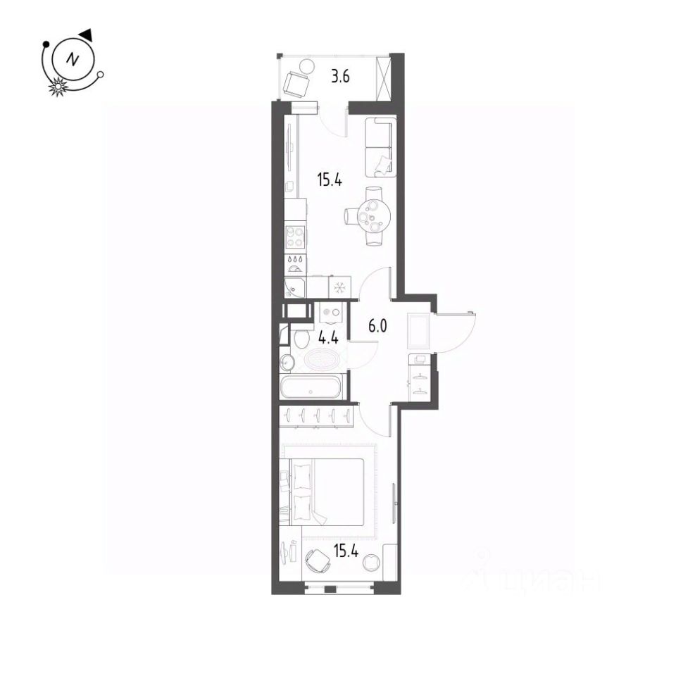 341548 Продается уютная светлая квартира ( 2Е) , где 1 полноценная комната + кухня-гостинная, в современном жилом комплексе ЖК Монография . 42,9 м2