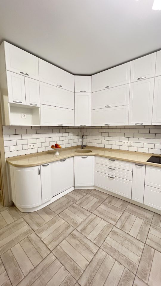 Квартира расположена на третьем этаже пятиэтажного дома, имеет продуманную планировку с просторной кухней-гостиной, окна выходят на две стороны.