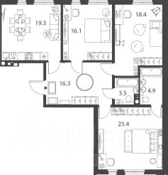 Просторная 3-комнатная квартира с дизайнерским ремонтом и большой кухней.