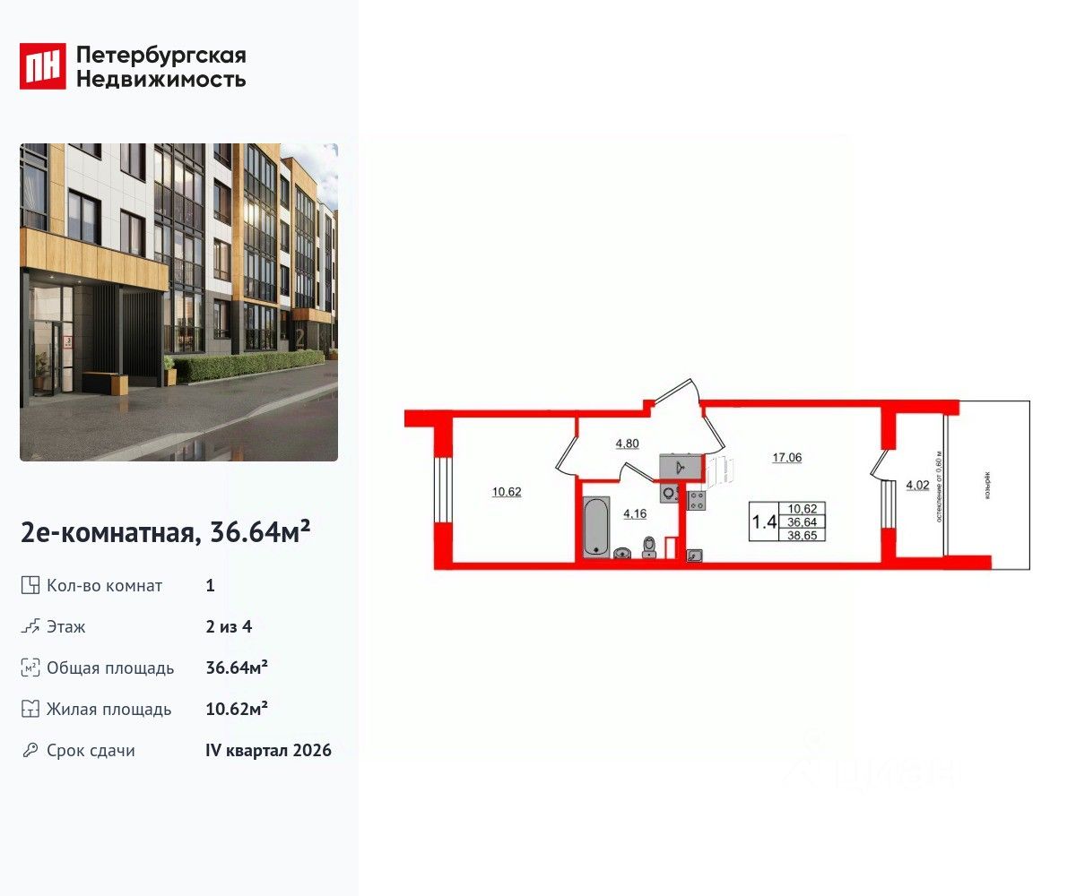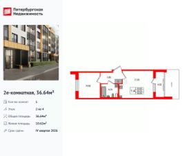 Удобная, классическая, функциональная европланировка, большая кухня-гостиная 17.06 м², просторная прихожая 4.8 м². Общая площадь квартиры - 36.64 м², жилая  10.62 м², высота потолка 2.77 м.