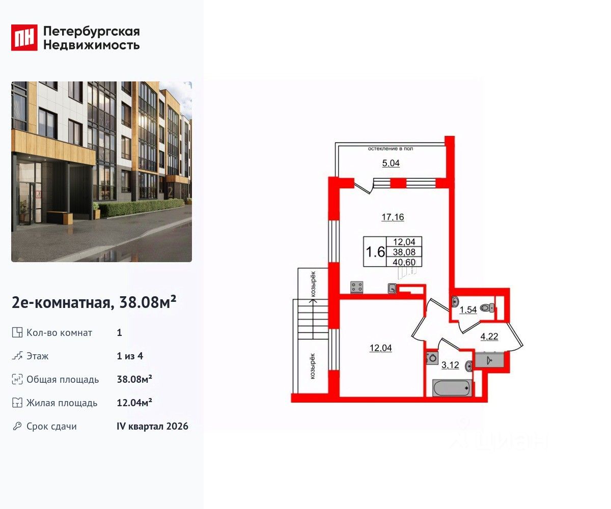 Удобная, классическая, функциональная европланировка, большая кухня-гостиная 17.16 м², вместительная прихожая 4.22 м². Общая площадь квартиры - 38.08 м², жилая 12.04 м², высота потолка 2.77 м.
