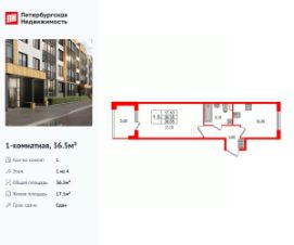 Продается просторная 1-комнатная квартира от застройщика в жилом комплексе "Univer City" в на юге Санкт-Петербурга.