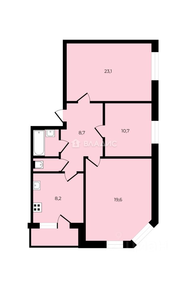 Три изолированные комнаты с площадью 19,6 кв. м, 23,1 кв. м и 10,7 кв. м предоставляют возможность организовать пространство по своему вкусу. Уютная лоджия станет отличным местом для отдыха.