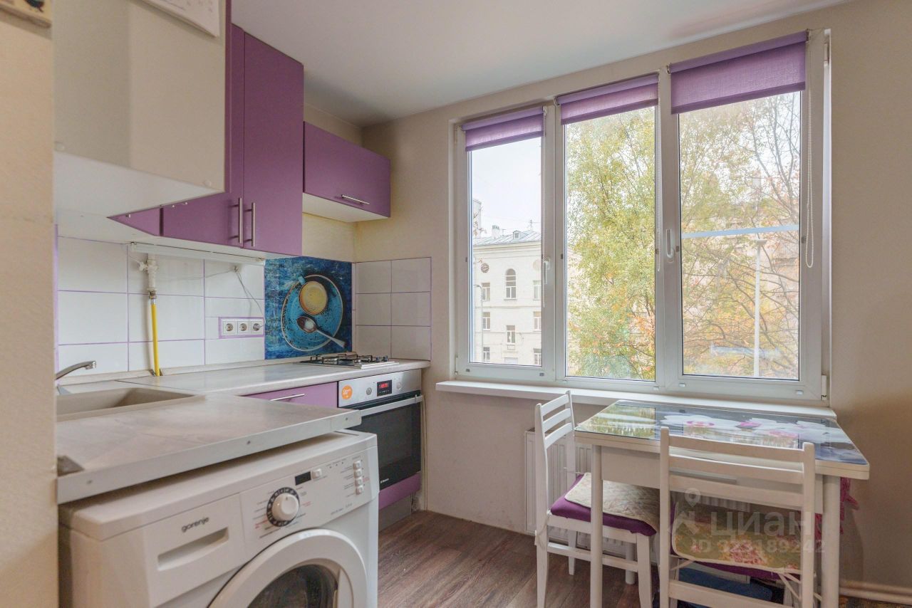 Общая площадь 23,1 кв.м., высота потолков 2,53 м., сан.узел совмещенный, окна смотрят в зеленый двор, кухня 6 кв.м. со встроенной бытовой техникой (стиральная машина, духовой шкаф, газовая варочная поверхность), комната правильной формы.