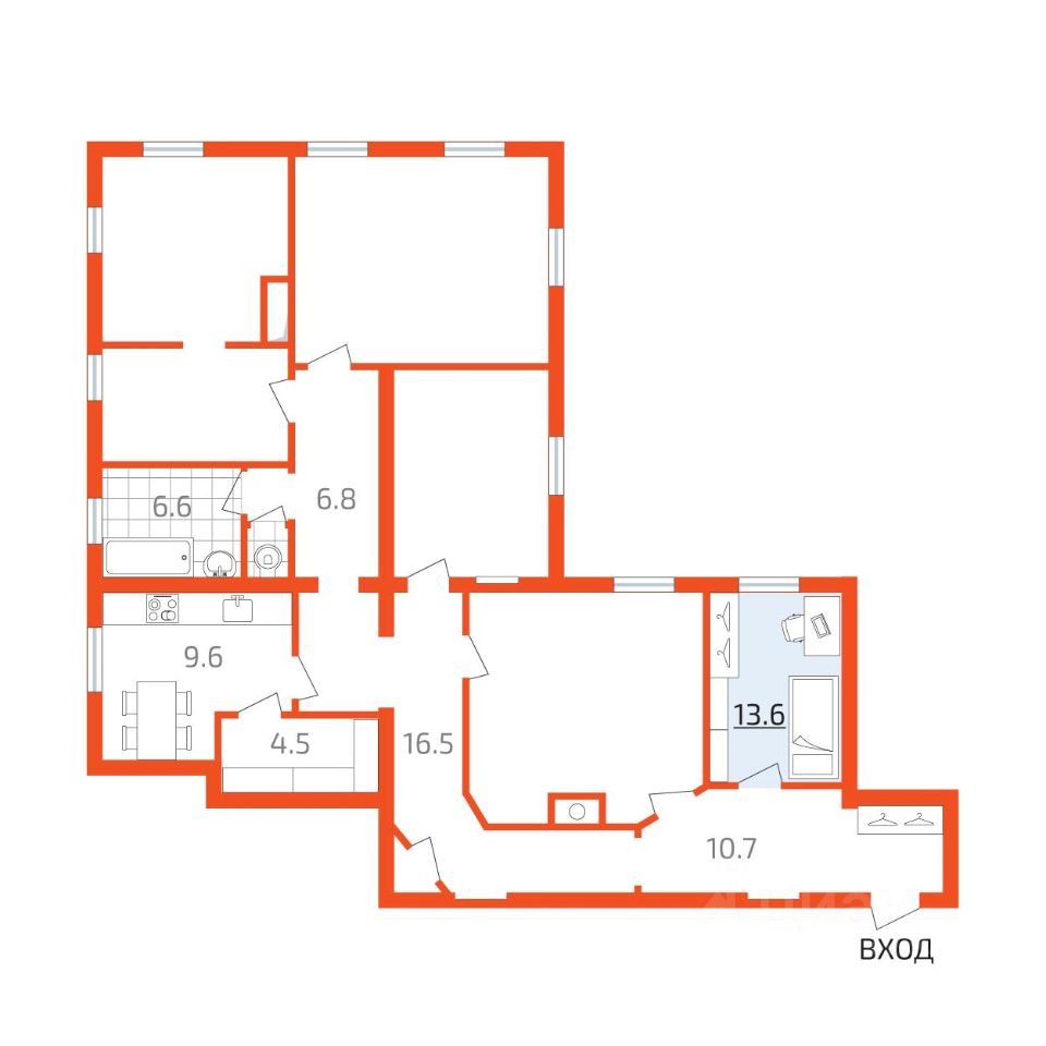 13,6 м²