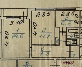 Комнаты: 14,6+11,7=26,3кв.м.
