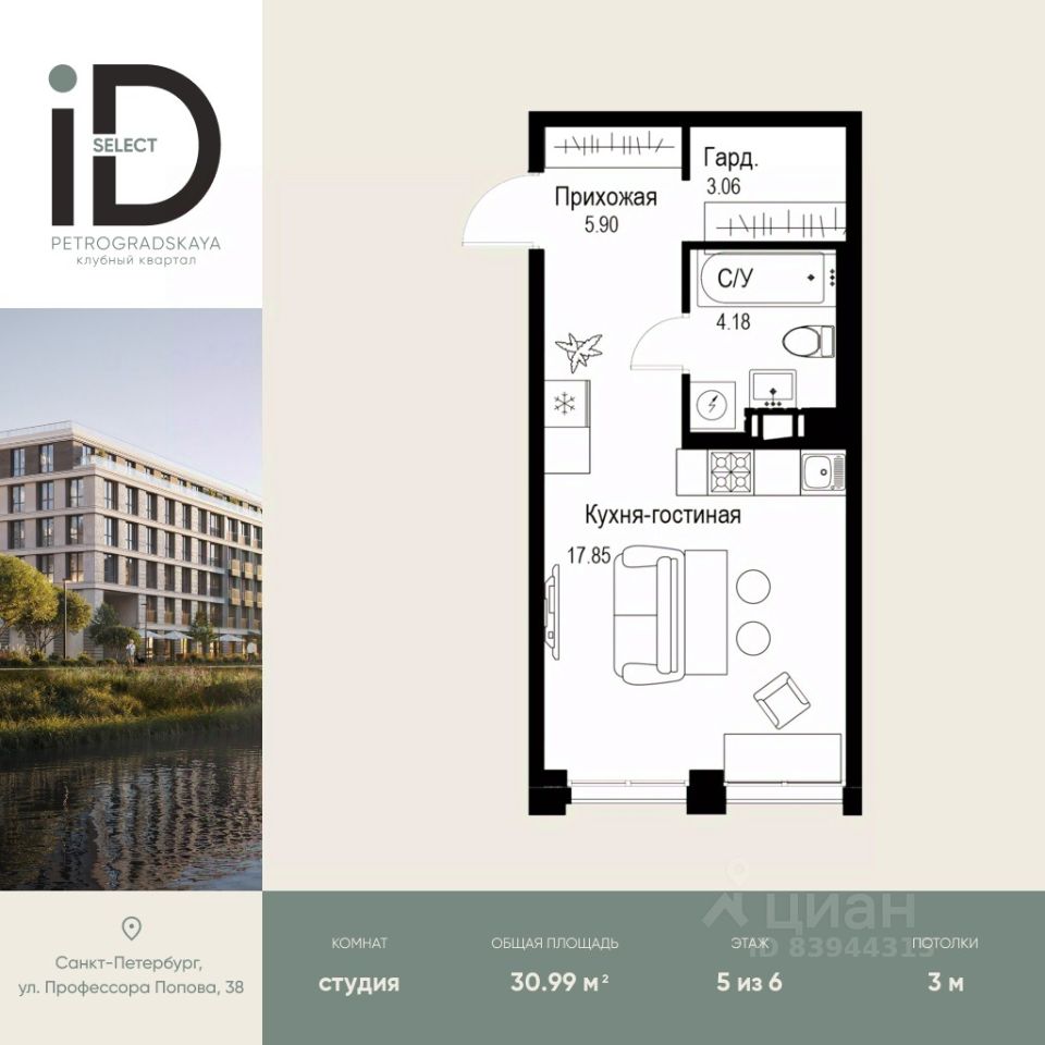 Клубный квартал iD Petrogradskaya на ул. Профессора Попова, 38 объединяет современную архитектуру, удобные планировки и развитую инфраструктуру, предлагая комфортную жизнь в престижном районе Санкт-Петербурга. Из квартир открываются виды на Иоанновский монастырь и реку Карповку. В шаговой доступности три станции метро: "Петроградская", "Чкаловская" и "Чёрная речка". 3-метровые потолки и эксклюзивные планировки создают атмосферу простора и уюта. Внутреннее пространство квартала включает благоустроенные дворы, курдонёры и подземный паркинг. Квартиры площадью от 20 до 136 м² с кухнями-гостиными до 40 м² и террасами с панорамными видами сдаются без отделки, оставляя свободу для индивидуальных интерьерных решений. Рядом ведущие вузы (ЛЭТИ, ИТМО), школы, детские сады, спортивные клубы, Ботанический и Вяземский сады. Удобный выезд на ЗСД, 10 минут до аэропорта Пулково. На территории квартала - кафе, рестораны, медицинские центры, детские и спортивные площадки.