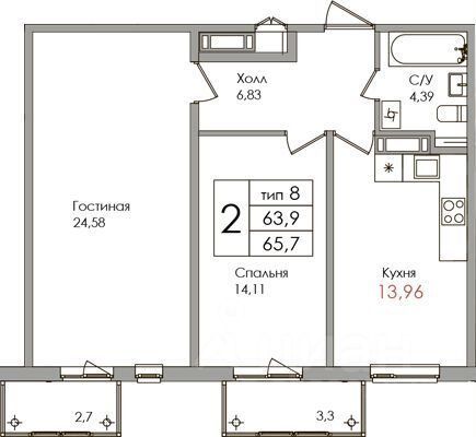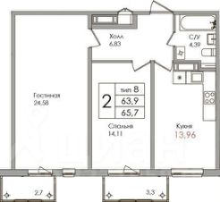 2-х комнатная квартира 63,8 кв. М.