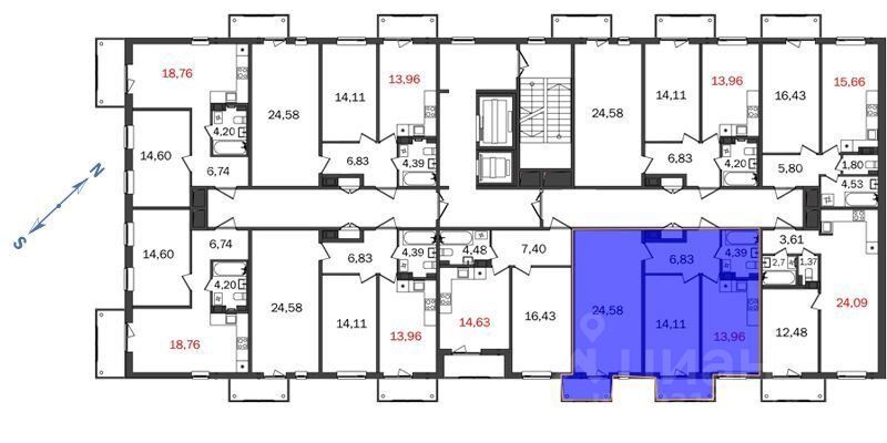 - Комната: 24,58 м. Кв.