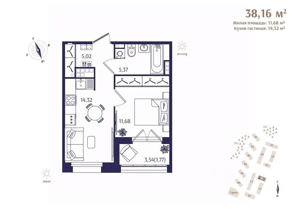 Функциональная однокомнатная квартира - Формат Light, которая подойдет для комфортного проживания небольшой семьи.