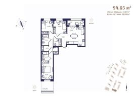 Просторная трехкомнатная квартира - Family- формат, в которой продумана каждая деталь для проживания семьи.