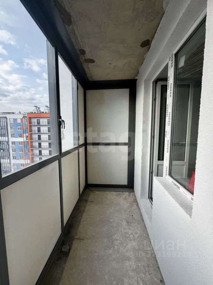 Квартира продается без отделки, что предоставляет возможность реализовать индивидуальный дизайн-проект с учетом личных предпочтений. Просторный застекленный балкон открывает панорамный вид на город.