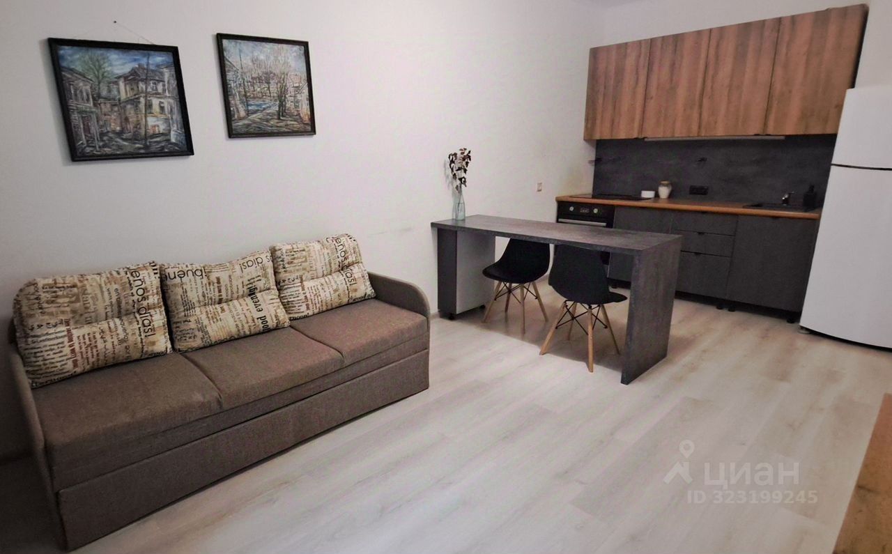 Очень функциональная кухня-гостиная площадью 17,54 кв.м. оборудована кухонным гарнитуром, со всей необходимой техникой. Разделена на зону столовой и зону отдыха.