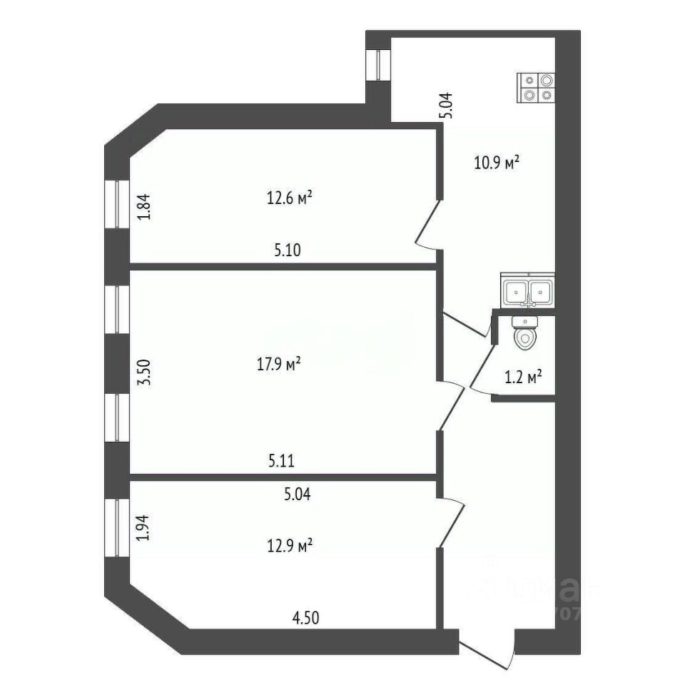 Отличительная особенность квартиры - маленькую комнату 12,6 метров можно легко переоборудовать в ванную комнату и УЗАКОНИТЬ переустройство, т.к. ниже этажом в аналогичной комнате находится ванная.