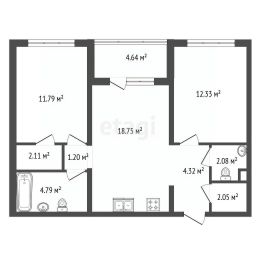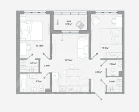 Современная двухкомнатная квартира площадью 61,75 кв.м расположена на седьмом этаже 12-этажного жилого комплекса комфорт-класса "ЛесART".