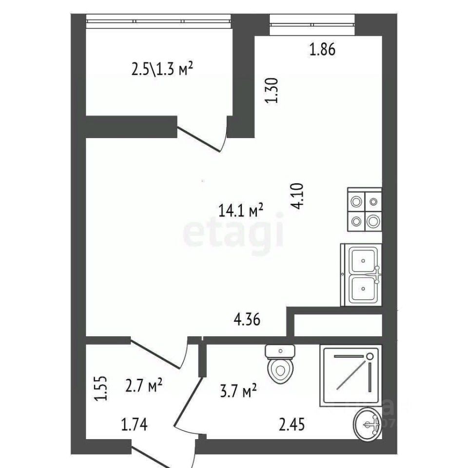 Студия с удачной планировкой, позволяющей рационально организовать пространство для комфортного проживания.