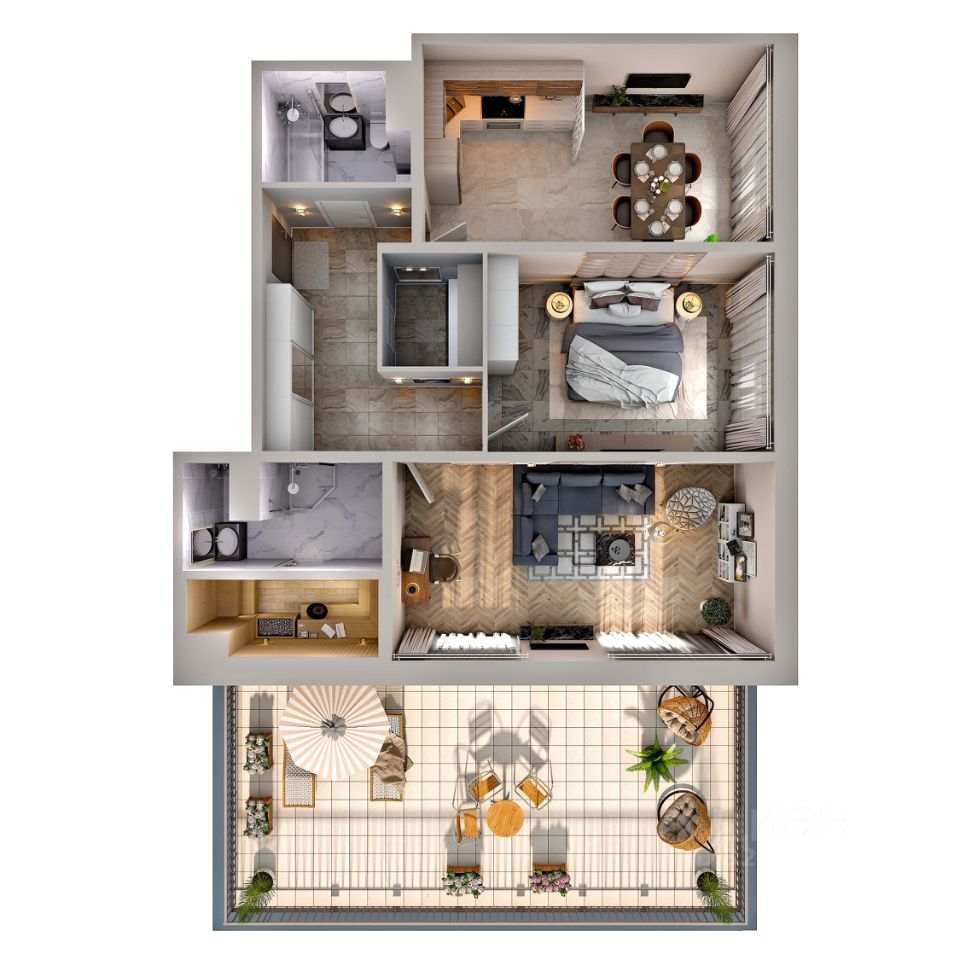 Просторная и светлая 2-комнатная квартира с удобной планировкой, личной уютной террасой и сауной в новом доме 2024 года постройки.