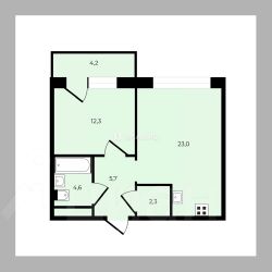 -Спальня 12,3 м2, отдельная гардеробная, совмещенный просторный с/у и неостекленный балкон 4,2 м2;