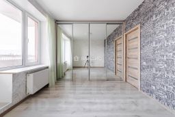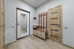 -На полу в прихожей, гардеробной и с/у - керамогранит, в комнате и на кухне - ламинат;