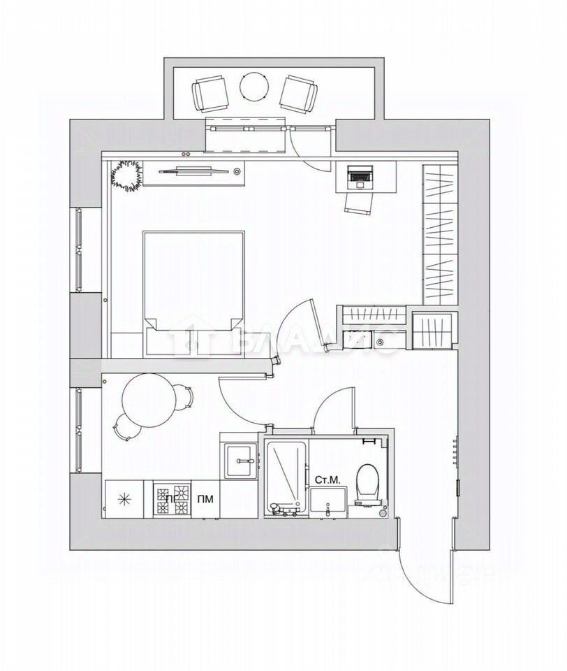 - Общая площадь: 31,2 кв. м.