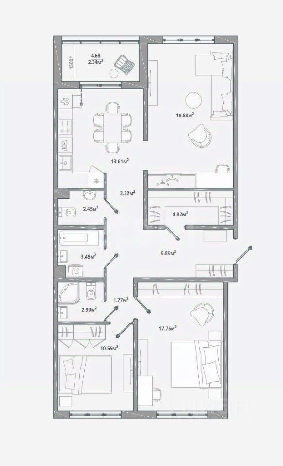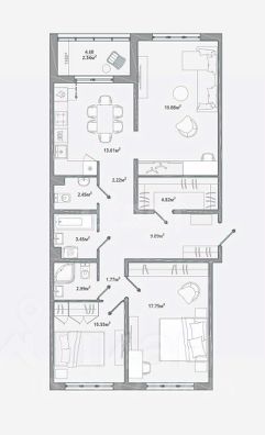 Придомовое пространство организовано как арт-зона с закрытыми от транспорта дворами, создающими безопасную среду для отдыха. Квартира оснащена системой "Умный дом", позволяющей удаленно управлять освещением, климатом и безопасностью, что оптимизирует энергопотребление и повышает уровень комфорта. Планировка площадью 91,7 кв.м продумана для функционального зонирования и подходит для просторного проживания семьи.
