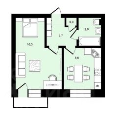 Жилая площадь: 16,3 м² (просторная комната)