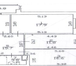 В квартире три жилых комнаты: 17.9;16.6 кв.м и 11.8 с лоджией 1,9 кв.м