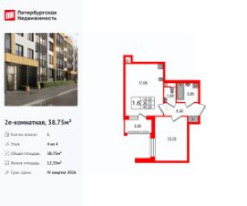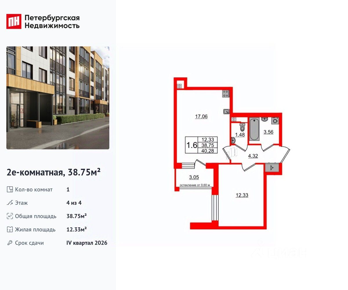 Удобная, классическая, функциональная европланировка, большая кухня-гостиная 17.06 м², просторная прихожая 4.32 м². Общая площадь квартиры - 38.75 м², жилая  12.33 м², высота потолка 3.07 м.