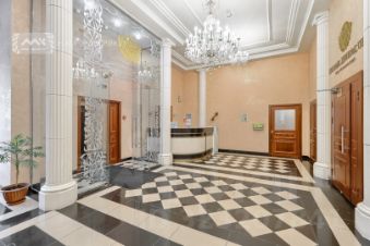 Входная группа в парадной выполнена по авторскому дизайну. Оформлен просторный холл с диванами, камином и местом для консьержа. 4 лифта, один из которых спускается в паркинг.