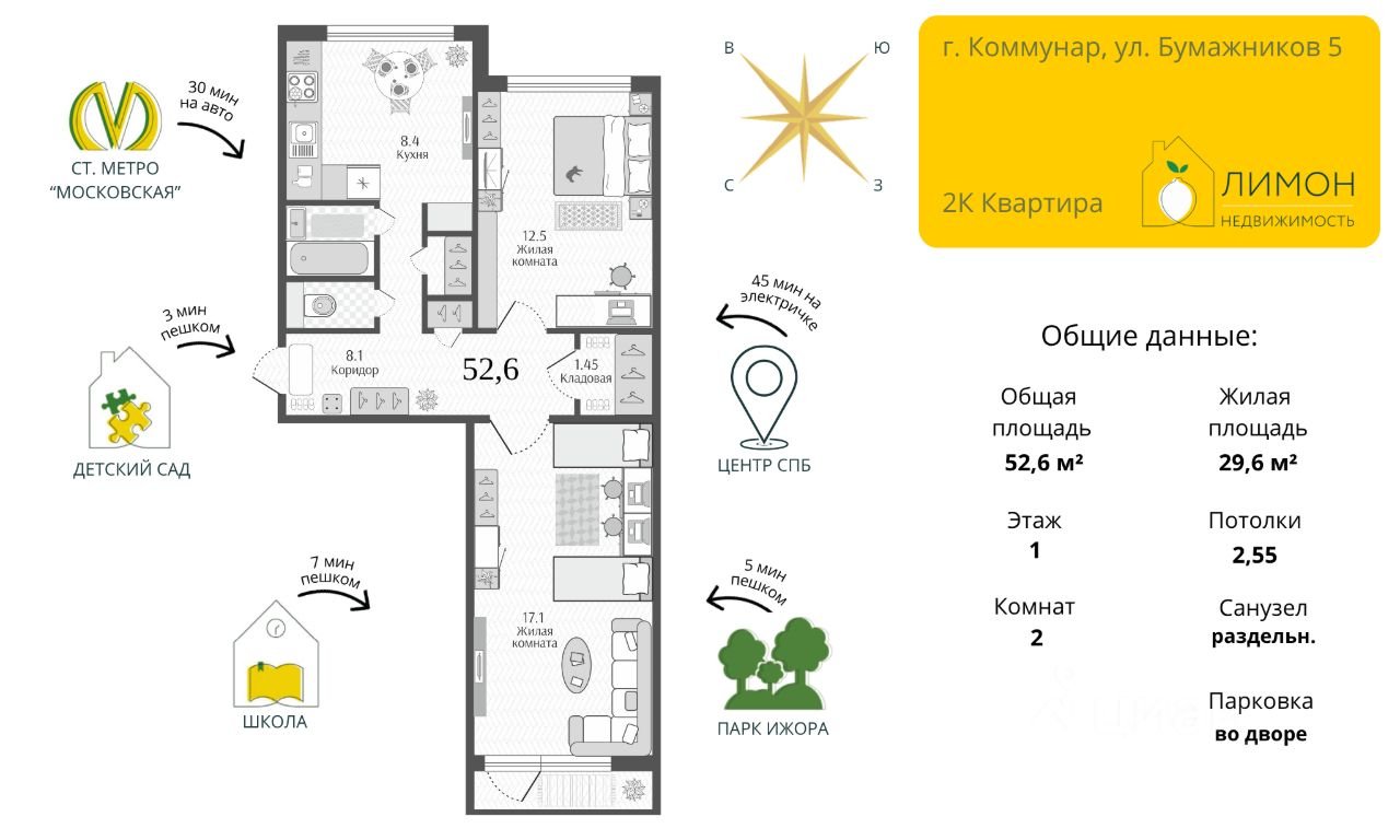 Для семьи с детьми (рядом школы и сады), пожилых людей (удобный 1 этаж) или как инвестиция под аренду — надёжное вложение в районе с отличной транспортной связью и стабильным спросом.