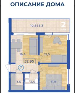 Общая площадь 48,3 кв.м., две отдельные спальни, большая кухня-гостиная, совмещенный санузел, гардеробная-кладовка при входе.