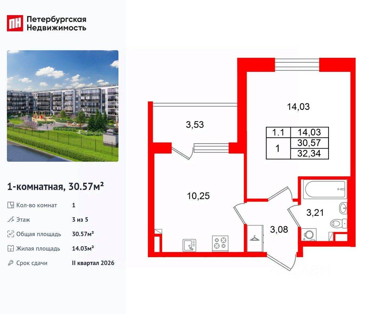 Удобная, классическая планировка, кухня 10.25 м², вместительная прихожая 3.08 м². Общая площадь квартиры - 30.57 м², жилая 14.03 м², высота потолка 2.77 м.