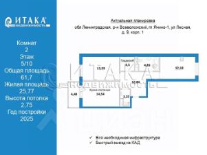 121005993 Просторная и светлая квартира площадью 61,7 кв.м. на 5 этаже — идеальное пространство для тех, кто ценит уют и свободу.Главная зона притяжения — кухня-гостиная 14,54 кв.м. Здесь приятно начинать день с чашкой кофе, собираться всей семьёй или устраивать уютные вечера с друзьями.Две отдельные комнаты 12,18 и 13,59 кв.м. обеспечат личное пространство каждому. Можно оформить спальню, детскую или уютный кабинет — вариантов множество.Два санузла (4,83 и 2,22 кв.м.) делают повседневную жизнь максимально комфортной.В просторной прихожей 10,84 кв.м. легко разместится вся сезонная одежда, а отдельная гардеробная 3,50 кв.м. поможет поддерживать порядок без лишних шкафов.Из кухни предусмотрен выход на балкон 4,48 кв.м. — здесь можно устроить зону отдыха или небольшой сад.Квартира без отделки, а значит — перед вами чистый лист, где вы сможете воплотить своё видение идеального дома, выбрав материалы, цвета и стиль по душе.Место, где хочется остаться.Добро пожаловать в уютный квартал — европейский пригород Петербурга, всего в 2 километрах от КАД!Здесь вас ждут яркие фасады, просторные дворы без машин, зелёные аллеи и ощущение воздуха — то, чего так не хватает в городе.Проект создан при участии голландского архитектора, поэтому квартал выглядит стильно, современно и при этом по-домашнему уютно.Для детей — три детских сада и школа прямо во дворе, для взрослых — кафе, магазины, аптеки, фитнес-центр с бассейном.Для активных — велодорожки, спортивные зоны, скейт-парк и каток зимой.До центра города рукой подать: 25 минут до метро Ладожская.Каждый день здесь — это комфорт, порядок и вдохновение.Если вы ищете не просто квартиру, а место, где действительно хочется жить — вы нашли его!
