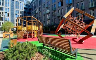 Двор закрыт и благоустроен. Камерное пространство будет скрыто от посторонних, поэтому вы можете спокойно оставлять детей играть на площадке. А для большего уюта территория украшена кустарниками и декоративными травами.