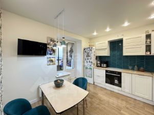 - Выполнен ремонт в современном стиле, ремонту около года бережного пользования, остается встроенная мебель, из техники посудомоечная машина, система водонагрева и электрический полотенцесушитель