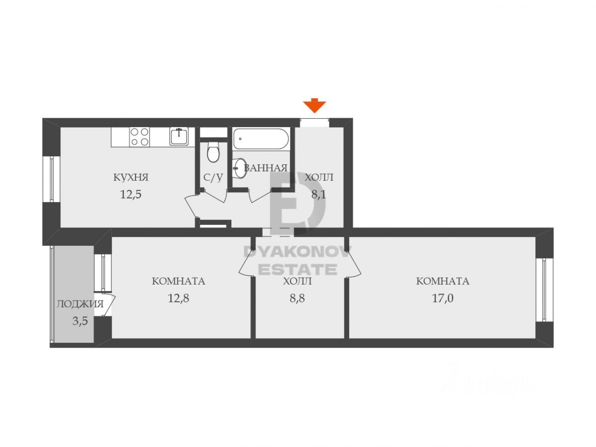 • Две изолированные комнаты — 12,8 м² и 17,0 м²