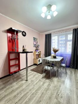В квартире остаётся и входит в стоимость встроенная кухня с техникой (плита с духовкой, вытяжка, посудомоечная машина), барная стойка, два шкафа в прихожей, шкаф купе в большой комнате, встроенный шкаф в коридоре.