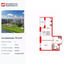 Удобная, классическая, функциональная европланировка, большая кухня-гостиная 19.73 м², просторная прихожая 5.19 м². Общая площадь квартиры - 39.21 м², жилая 10.72 м², высота потолка 2.77 м.