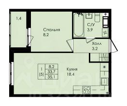 * Удобная планировка: просторная кухня-гостиная (18,4 м²) и изолированная уютная спальня (8 м²). Свободное пространство позволяет легко зонировать площадь, например, под обеденную зону и место для отдыха, или организовать дополнительное спальное место.