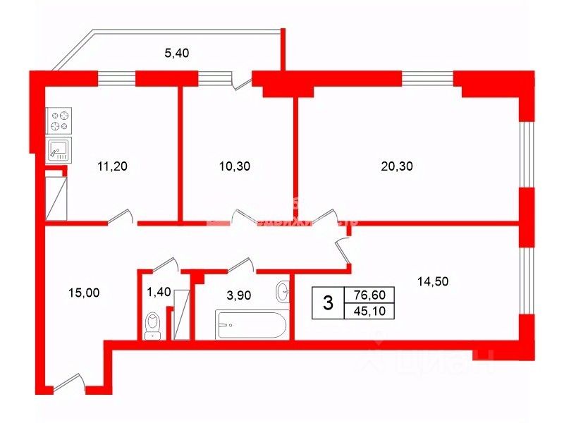 76,6 м²