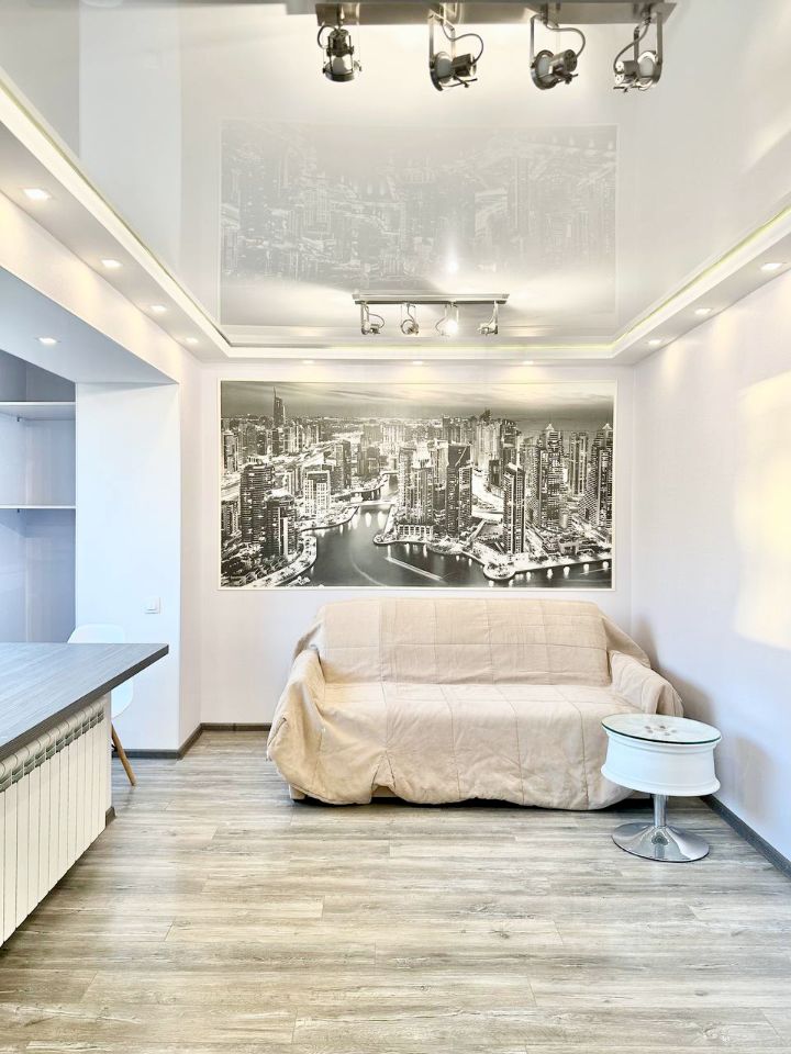 Это не просто однушка — а полноценная евродвушка с зонированием: гостиная, кухня и выделенная спальная зона создают комфортное пространство без лишних стен.
