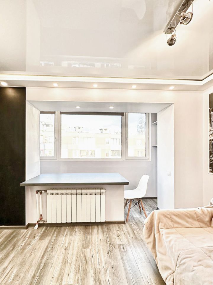 • Мягкое освещение, натяжные потолки и стеклянная дверь в спальню визуально добавляют света и воздуха