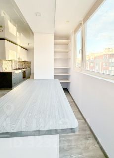 • Балконная зона оборудована столом и полками — идеальное место для работы или утреннего кофе