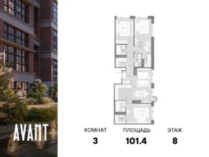 В историческом центре с особой атмосферой Петроградской стороны представлена 3-х комнатная квартира на 8 этаже общей площадью 101.4 кв.м.