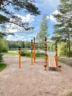 • Во дворе: детская площадка, баскетбольное и волейбольное поле, уличные тренажёры