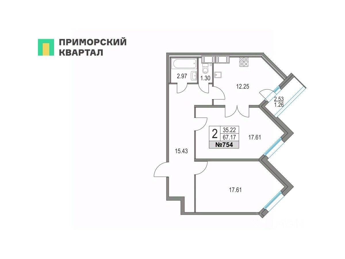 Продается 2 - комнатная квартира общей площадью  67.17 кв.м., на 13 этаже в построенном и заселенном корпусе 31 (год сдачи: 2022 г.)